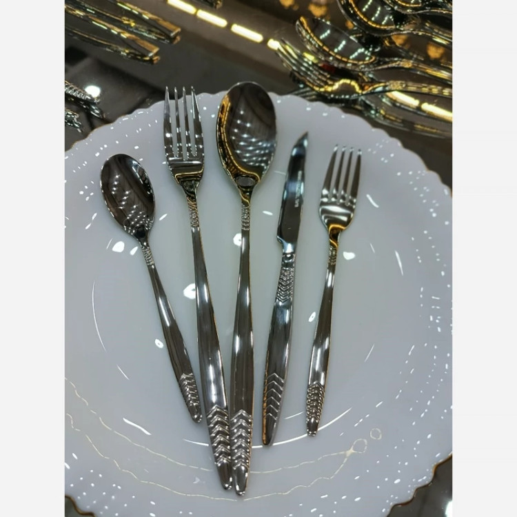 باسلام عرض ادب ✅سرویس قاشق و چنگال قالب اروپایی ✅کیفیت درجه 1و آهنربا نگیر و با ضمانت ماشین ظرفشویی ✅برند یونی هوم ✅طرح بسیار شیک و مدرن ✅24نفره و 124پارچه قاشق و چنگال:24 کاردوچنگال:12 کفگیر:4 ملاقه:2 ملاقه کوچک:2 قاشق خورشت:2 قاشق بستنی:6 قاشق مربا:12 قاشق شربت:12